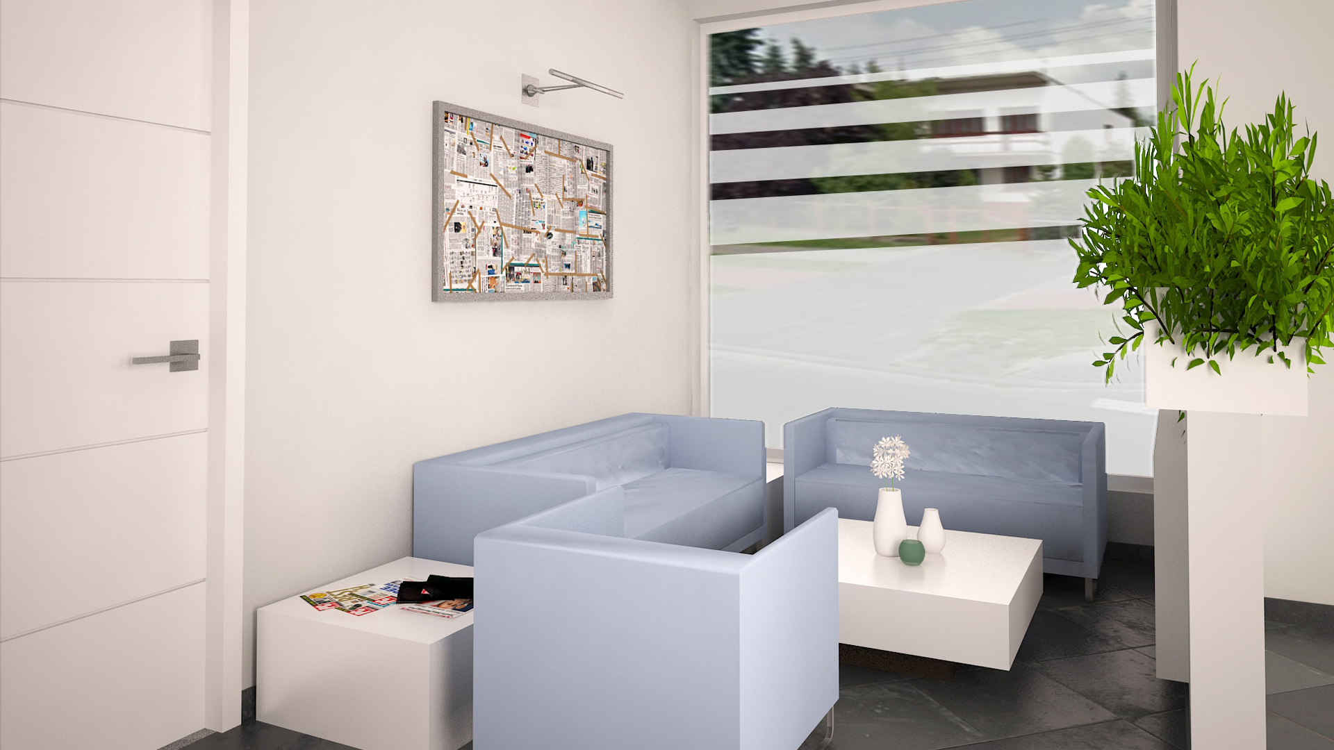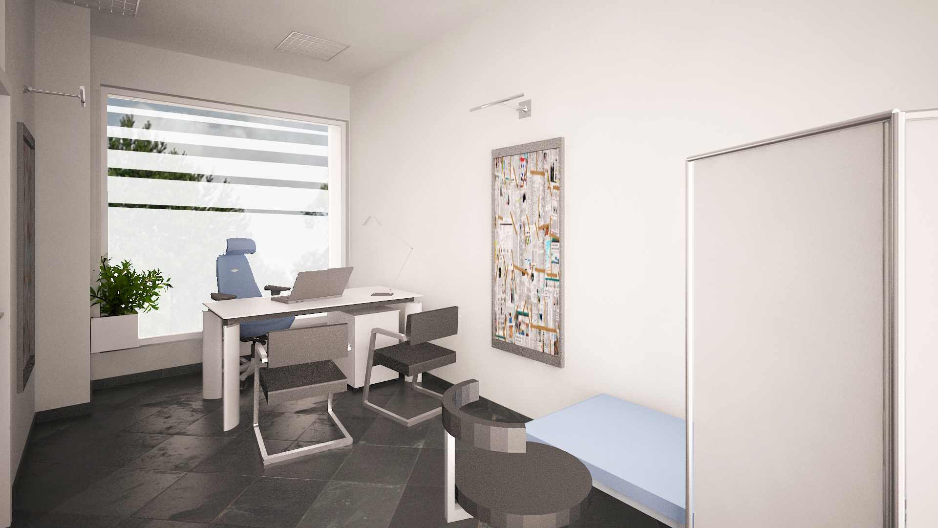 A small commercial and service pavilion in Przeźmierowo near Poznań was transformed into a private cardiology clinic – a complex of diagnostic/treatment rooms and front desk plus waiting area. The project was developed in March 2016 and was completed in the same year.