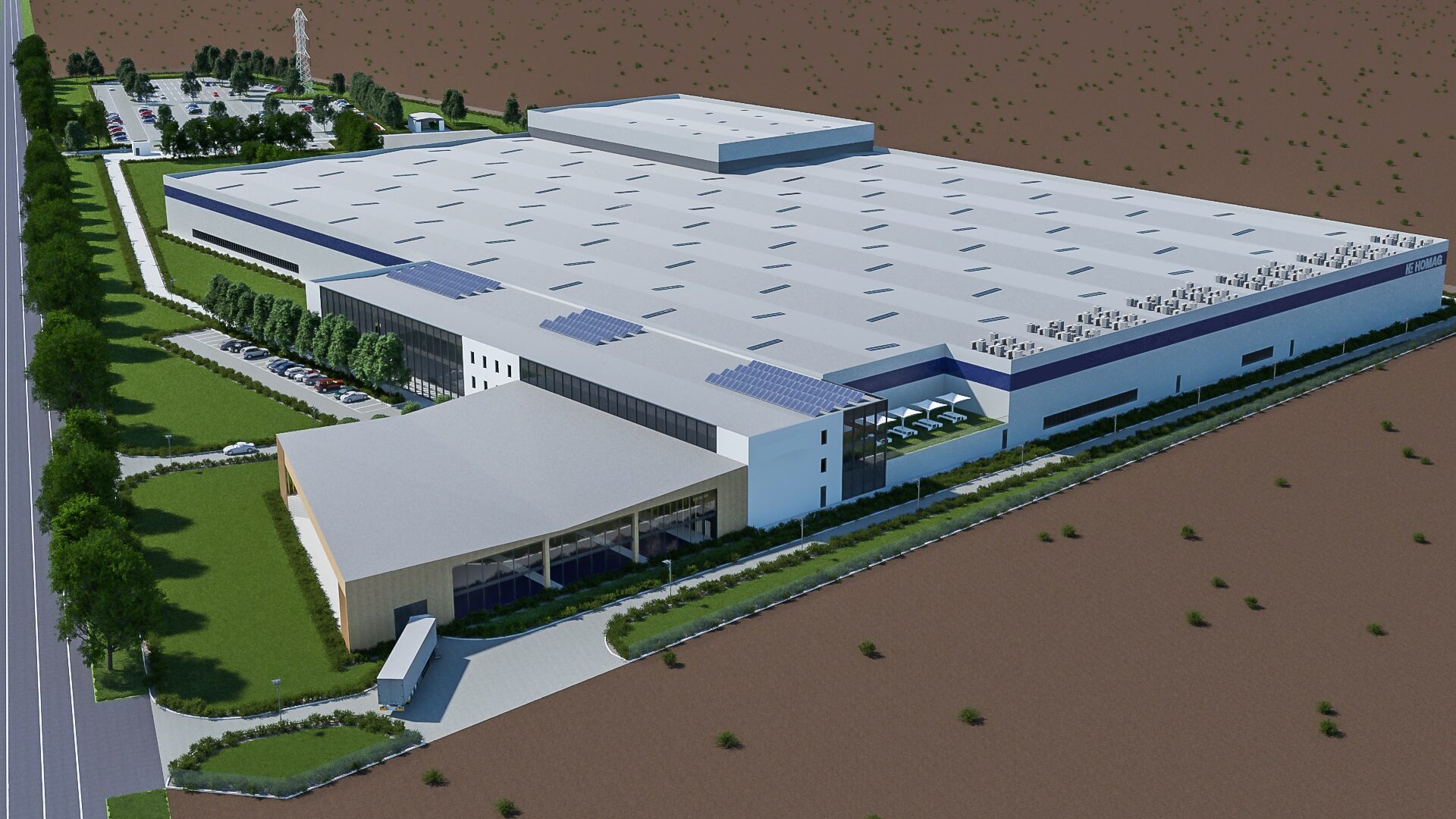 Zakład produkcyjny HOMAG wraz z biurem, zapleczem socjalnym i budynkiem wystawienniczym będzie zlokalizowany przy ul. Zaniemyskiej (DW nr 432) w Środzie Wielkopolskiej. APK od wiosny roku 2021 uczestniczyło w pracach projektowych mających na celu przygotowanie koncepcji nowej fabryki HOMAG w Środzie Wielkopolskiej, początkowo dla Hochtief Polska a następnie bezpośrednio dla Inwestora. Ostatecznie Inwestor zdecydował o wyborze scenariusza „design&build” i powierzył zadanie firmie GOLDBECK. Program funkcjonalny zakładu obejmuje budynek produkcyjno-magazynowy o pow. ok. 32,000 m2, trzykondygnacyjny budynek socjalno-biurowy z kantyną oraz budynek wystawienniczy. W myśl koncepcji APK hale produkcyjno/magazynowe i budynki socjalne/biurowe/wystawowe są wzajemnie połączone. Ponadto projekt obejmował system ruchu wewnętrznego, tj. parking dla pracowników na 480 samochodów, place manewrowe z miejscami postojowymi dla TIR-ów oraz drogi wewnętrzne, w tym pożarowe.